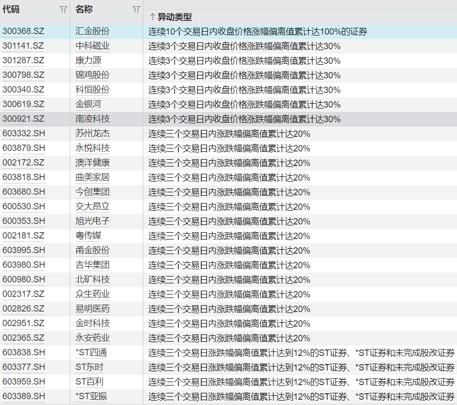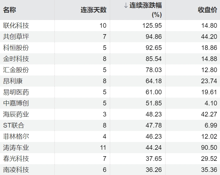 18 06-16 10:11连续异动个股一览